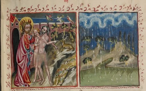 God with Adam and Eve The First Rain in Paradise, around 1200 - 1254