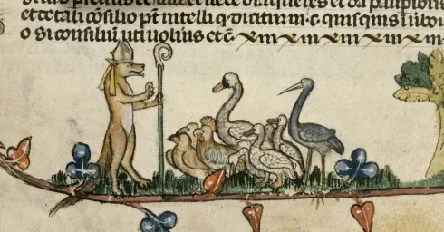 We have gleaned from many manuscripts, the beasts were not all so monstrous. Others were humorous, perhaps grimly so. Reynard the Fox, for instance, was popular across the millennium both as a trickster fairy tale and a social commentary of the various ruling institutions of the time. Of the trickster archetype, a vast array of tales depict Reynard as deceptive, intelligent and humorous. One popular image across the ages portrays him as a deceptive priest, preaching before an audience of gullible birds whom he intends to devour. Soon, they would hear not the horns of heaven’s angels, but that of their own flesh tearing in Reynard’s jaws.